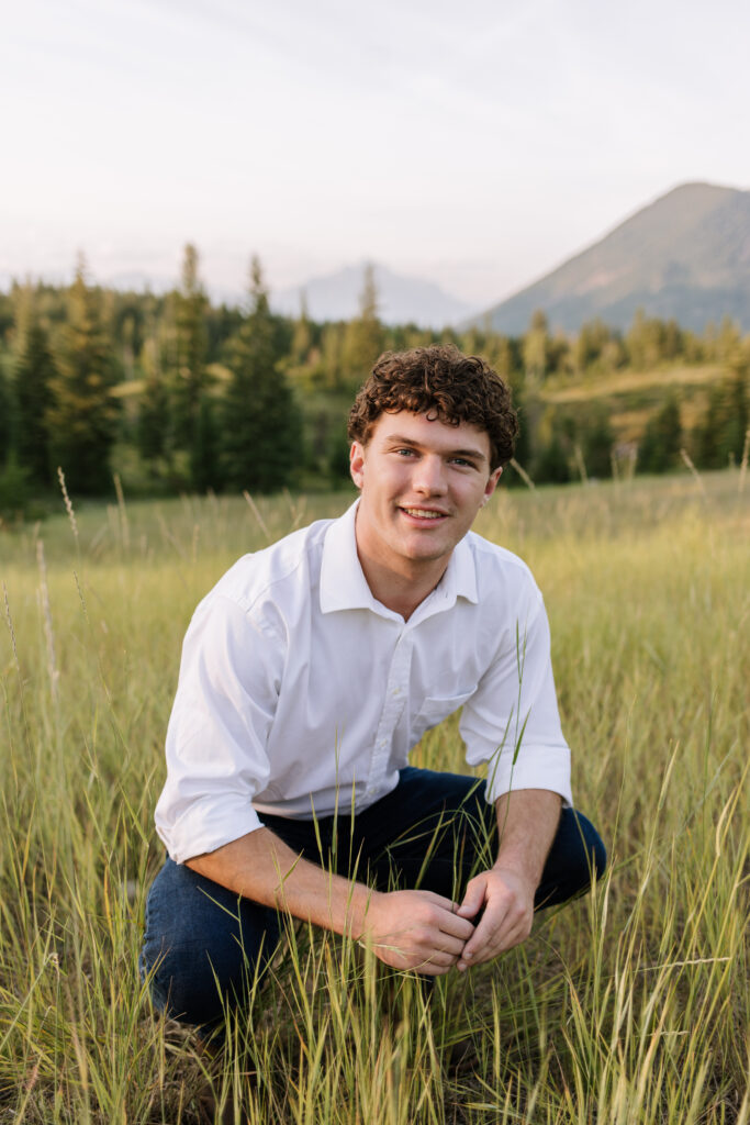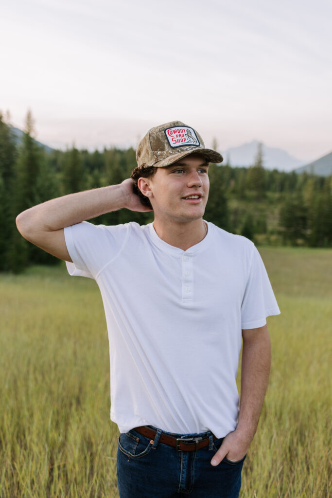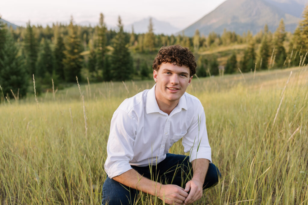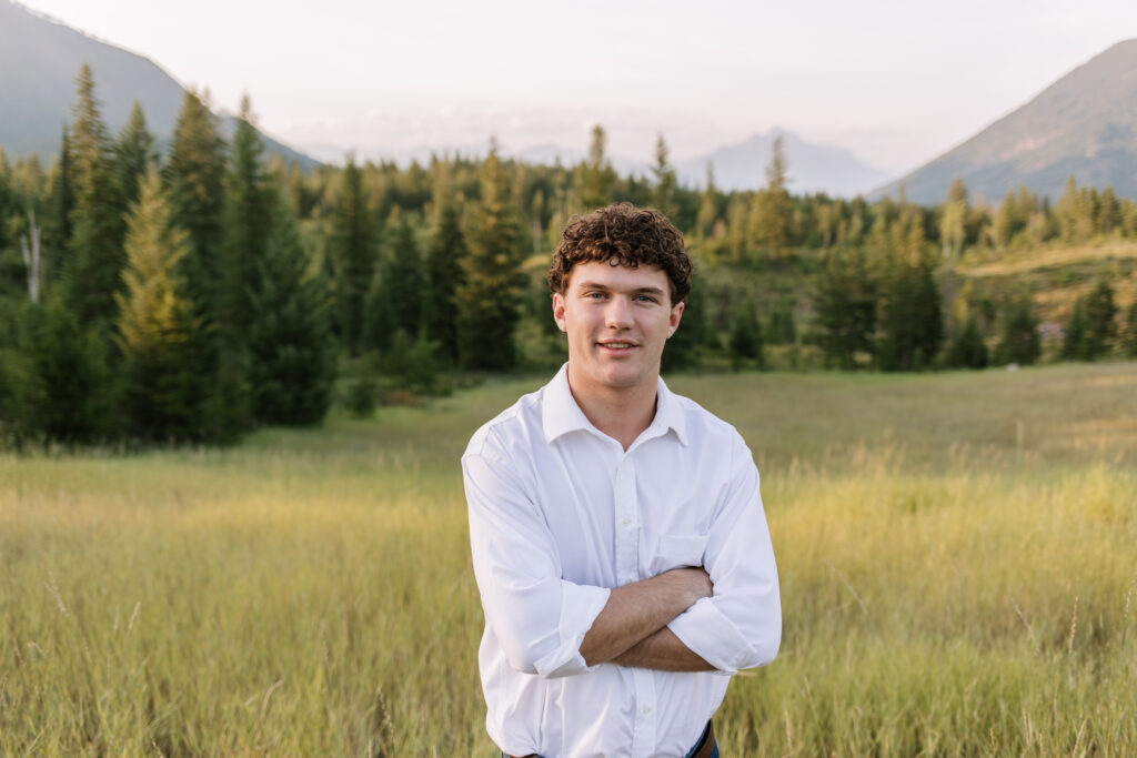 Senior photos in Glacier National Park are always special because the landscape adds so much character to the images. Instead of a studio backdrop, the mountains, fields, and natural light become part of the portrait.
